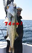 今朝はチャーターで出船。 朝一からミノーやバイブ・VJで狙っていきます。 ヒット連発シーンが何度もあったりと終始ヒットあって、全員70upゲット出来、十二分に楽しめました♪ 最大71cm(他71・71・70・67・67〜65cm)まで