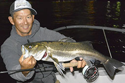 今朝はチャーターで出船。 フライとルアーの混成です。 朝一はオープンでビッグベイトで狙うもモーニングサービス少なく、トップで出てもバレちゃって・・・。 その後はフライメインで壁撃ちとかしたが、前夜の雨の影響モロありでフライトップ全然出ません・・・。 水の良い沖ストで狙うもセイゴラッシュでした。 途中ルアーのゲストが、シーバス釣ったりイナダ釣ったりでした。 最大57cmまで イナダ50cmまで