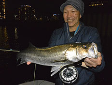 今朝はチャーターで出船。 フライとルアーの混成です。 朝一はオープンでビッグベイトで狙うもモーニングサービス少なく、トップで出てもバレちゃって・・・。 その後はフライメインで壁撃ちとかしたが、前夜の雨の影響モロありでフライトップ全然出ません・・・。 水の良い沖ストで狙うもセイゴラッシュでした。 途中ルアーのゲストが、シーバス釣ったりイナダ釣ったりでした。 最大57cmまで イナダ50cmまで